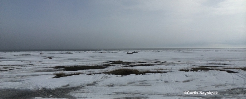 Fog and 3 ft. chop with north wind at 14 this morning. Crews have been hunting 25 to 30 miles east or west in remaining pack ice now with ocean ice free in front of Shishmaref. Poor weather and lack of close pack ice resulting in below average Bearded Seals and handful of Walrus brought in. With good weather the birds have shown up and are in full spring migration.